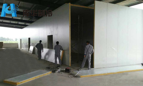 圖一:前期庫板交接后進場圖片 圖二:安裝氣調(diào)庫庫板半成品施工圖