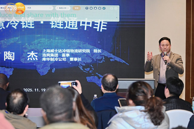 會(huì)議現(xiàn)場(chǎng),上海威士達(dá)冷鏈物流研究院院長、浙江庫華制冷設(shè)備工程有限公司董事長陶杰,結(jié)合非洲農(nóng)業(yè)現(xiàn)狀,分享冷鏈技術(shù)對(duì)非洲農(nóng)業(yè)農(nóng)機(jī)的助力作用,為非洲農(nóng)業(yè)發(fā)展提供冷鏈新思路,助力全球零饑餓,提供新思考。